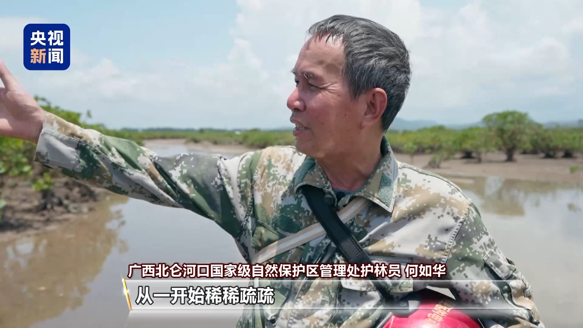 广西北仑河口国家级自然保护区管理处 何如华:工作越来越轻松了。村民对红树林的保护意识提高了,没有人去搞破坏。